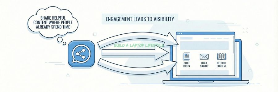 The goal is not to push links constantly. It is to provide value first and invite people to learn more when it makes sense.